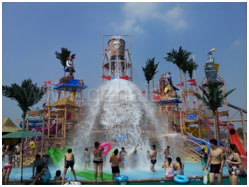 length:25m,width:22m,height:15.6m,water capacity: 1000m³/h,equipment capacity: 300person/h,power:82kW,floor space:800m²,spiral slide 3 set,kids slide 3 set. Column, arms are galvanized and fasters are 304 stainless steel. |